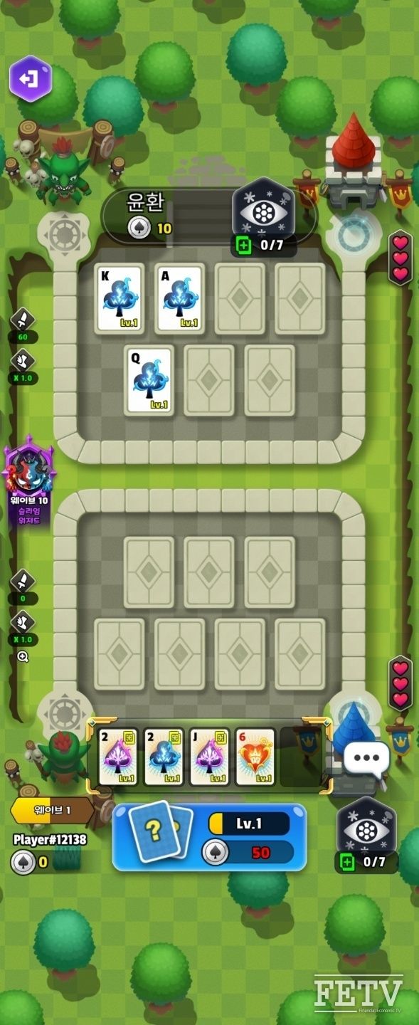 ‘포커타워디펜스’의 유닛은 모두 트럼프 카드로 이뤄졌다. 이용자는 이 카드를 맵에 배치해 몰려오는 몬스터를 상대방보다 오래 막으면 승리한다. 카드는 같은 문양이나 숫자를 합치면 다음 레벨의 랜덤한 카드로 변한다. 생산하는 카드도 랜덤으로 나오기 때문에 한치 앞을 알 수 없는 포커의 묘미를 잘 구현했다.