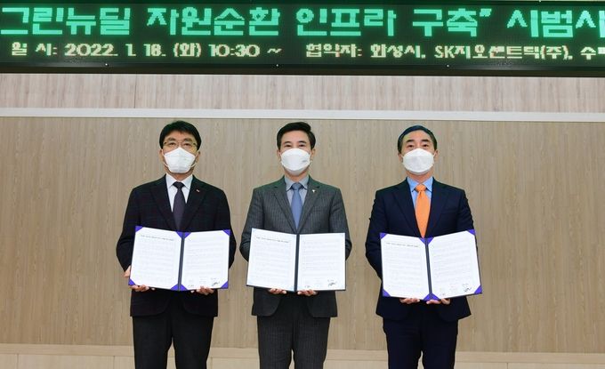 [FETV=박제성 기자] SK지오센트릭이 경기도 화성시, 친환경 소셜 벤처기업 수퍼빈과 플라스틱 순환체계 구축을 위한 양해각서(MOU)를 체결했다.