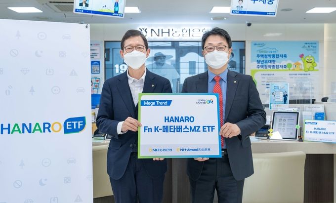 [FETV=박신진 기자] NH농협은행은 서울시 중구에 위치한 본점 영업부에서 NH–Amundi 자산운용이 출시한 메타버스 신상품 'HANARO Fn K-메타버스MZ' 상장지수펀드(ETF) 가입행사를 했다고 18일 밝혔다.