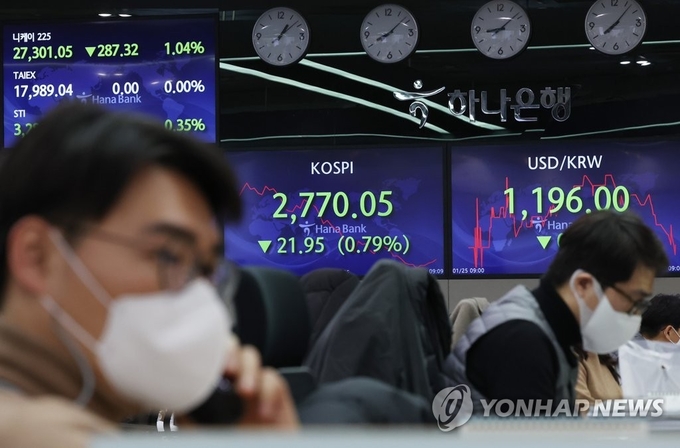 코스피 지수도 동반 하락해 전장 대비 71.61포인트(2.56%) 하락한 2720.39로 거래를 마쳤다. 개인이 4624억원을 순매수했다. 외국인과 기관은 각각 4624억원과 1713억원을 순매도했다.