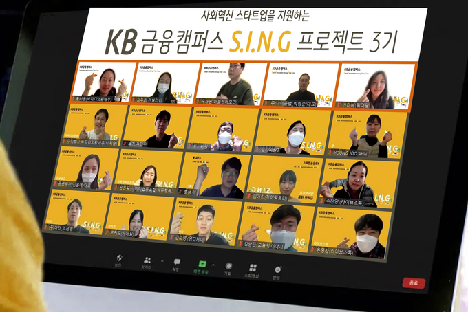 ‘KB금융캠퍼스 S.I.N.G프로젝트’는 사회문제를 비즈니스로 해결하는 사회혁신 스타트업 기업의 사업역량 강화 지원을 위한 국민은행의 사회공헌 사업이다. 지난해 10월에 시작된 ‘KB금융캠퍼스 S.I.N.G프로젝트’ 3기는 사회적 가치를 추구하는 3년차 이상 스타트업 15개 기업을 대상으로 10주 동안 금융, 재무 등 기업 경영 실무 교육 및 1:1 맞춤 컨설팅, KB국민은행 금융 전문가 멘토링을 진행했다.