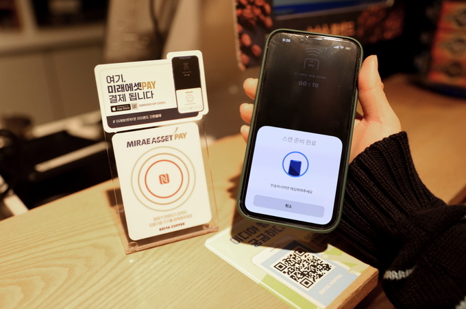 미래에셋PAY는 아이폰 기반의 NFC기술을 활용한 간편결제 서비스로, 이디야커피 가맹점에 별도 설치된 NFC 결제 패드에 핸드폰을 대기만 하면 1~2초만에 결제돼 소비자들의 편리함을 더욱 더할 예정이다.