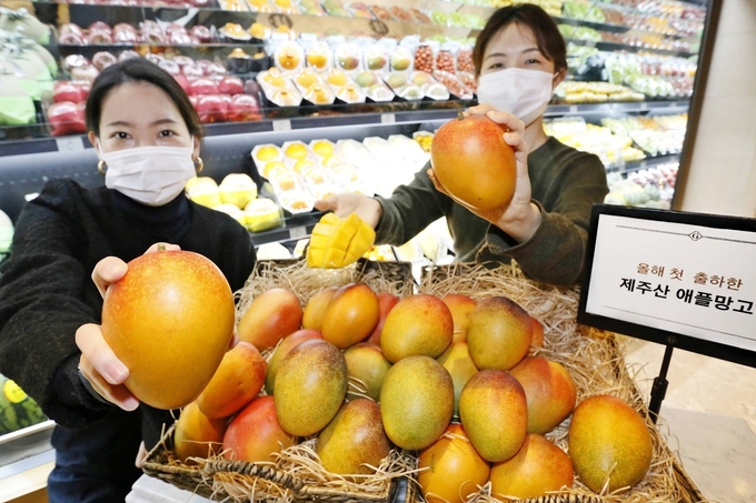 [FETV=박제성 기자] 갤러리아백화점은 명품관에서 제주산 애플망고를 올해 처음 선보인다고 6일 밝혔다. 갤러리아는 제주도 서귀포에서 온실 재배를 통해 생산된 해당 상품을 산지직송으로 공급받는다.