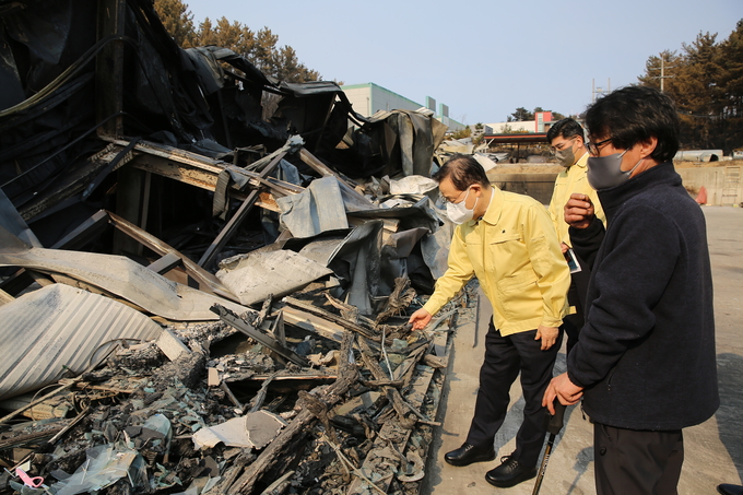 자동차부품 판매업을 영위중인 ‘울진현대상사’는 이번 산불로 부품창고와 주택 일부가 소실됐다. 업체 추산 피해액은 약 50억원 규모로 추정되고 있다. ‘울진현대상사’ 이정희 대표는 “화재보험도 가입되지 않은 상태로 어찌해야 할지 모르는 막막한 상황”이라며, 피해 기업의 경영애로 해소를 위한 적극적인 지원책 마련을 호소했다.