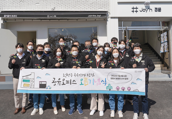 SK넥실리스는 8일 조인정읍 공유가게 3호점 ‘공유오피스’ 개소식을 열었다. 공유가게 1호점 건물 위층의 빈 점포를 리모델링해 만든 공유오피스는 정읍시와 함께 추진하는 지역 청년창업 교육의 공간이다. 이곳은 창업자들의 협업 공간, 지역 주민이 언제나 방문할 수 있는 커뮤니티 공간 역할을 할 것으로 기대된다. 운영은 사회적기업 언더독스가 맡는다.
