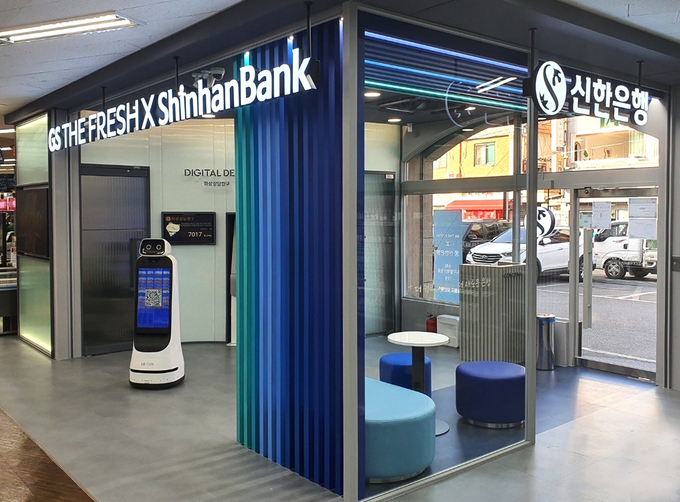 GS더프레시 디지털혁신점포 광진화양점(이하 광진화양점)에는 기존 ATM보다 고도화된 ‘디지털데스크’와 ‘스마트키오스크’가 설치된다. 우선 점포 내 서비스 공간에서 들어서면 로봇 컨시어지가 고객을 맞아 안내 및 QR코드를 통한 이벤트 공지 등 서비스를 제공한다.