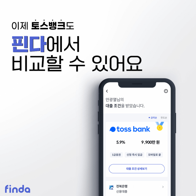 박홍민 핀다 공동대표는 "대출 비교 서비스 고객이 최적의 조건을 잘 찾을 수 있도록 기존 금융사와 또 다른 상품경쟁력을 갖춘 토스뱅크를 입점시켜 선택지를 더 넓혔다"며 "1등 대출 비교 플랫폼으로 자리를 굳건히 하고 고객을 최우선의 가치로 생각하는 금융 플랫폼으로서 금융사와 플랫폼의 상생 경쟁력을 갖춰가겠다"고 밝혔다.