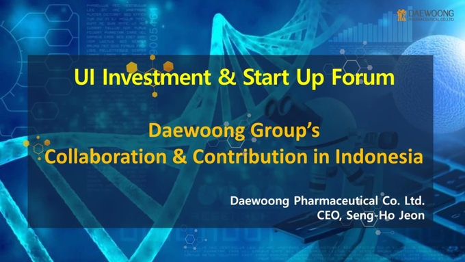 대웅제약은 지난 14일 인도네시아 국립대학교(UI)에서 열린 투자포럼 ‘UI 인베스트먼트 & 스타트업 포럼’에 전승호 대표가 실시간 비대면으로 참가해 대웅제약이 그동안 추진해 온 인도네시아 사업과 향후 계획을 소개했다. 또 우수 대학 및 인재와 함께 추진할 산학 연계 오픈 이노베이션의 현황과 계획을 공유했다.