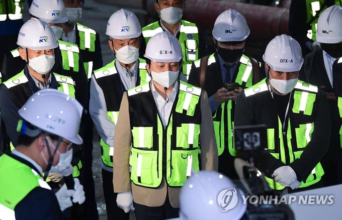 인수위가 방문한 GTX-A 6공구 현장은 서울역과 삼성역을 연결하는 구간이다. 원통형 굴착기로 터널을 뚫는 TBM(Tunnel Boring Machine) 방식을 적용해 소음과 진동을 최소화하고 신속하게 공사를 추진한다. 강희업 국토교통부 철도국장은 "소음과 진동은 허용 기준치보다 2분의 1 정도 관리하고 있다. 문화재 구간에서 허용되는 소음·진동 수치와 유사한 것으로 평가된다"며 "건물들을 사전 점검하면서 침하 등 이상징후가 노출될 때 보완작업을 하고 있다"고 설명했다.