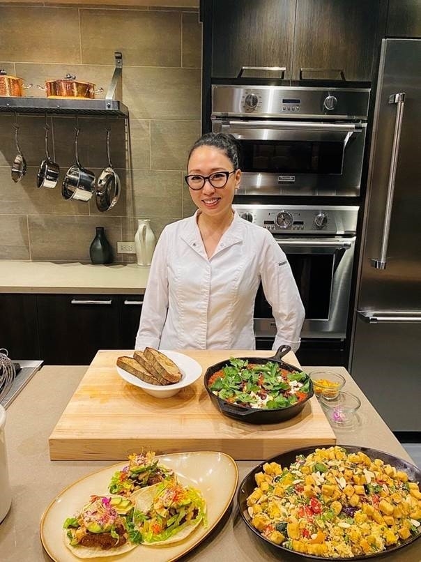 28일 오전에는 한인2세 요리 인플루언서 주디 주가 풀무원USA의 식물성 지향 식품 브랜드 ‘플랜트스파이어드’ 제품인 토써블 두부, 식물성 볼로네제 밀키트, 식물성 대체육 스테이크 등을 활용해 다양한 요리를 선보였다.