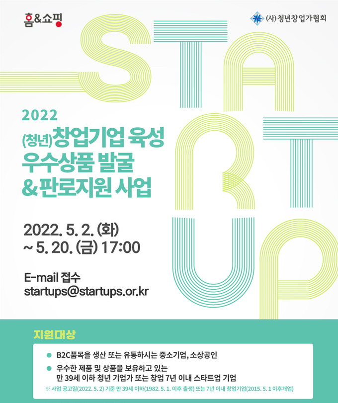 [FETV=김수식 기자] 홈앤쇼핑은 잠재성과 상품 경쟁력을 보유한 소비 및 생활재 스타트업 상품 발굴 및 육성지원을 위한 ‘2022년 청년창업기업 육성 우수상품 발굴 및 판로지원’ 사업을 진행한다고 3일 밝혔다.