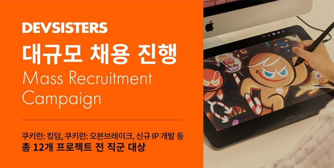 이번 채용은 데브시스터즈가 지난해 성공리에 런칭한 ‘쿠키런: 킹덤’과 안정적인 서비스를 이어가고 있는 ‘쿠키런: 오븐브레이크’, 그리고 새로운 성장 동력으로 자리할 신규 프로젝트들의 부스팅을 위한 것으로, 작년에 이어 역대 최대 규모로 진행된다.