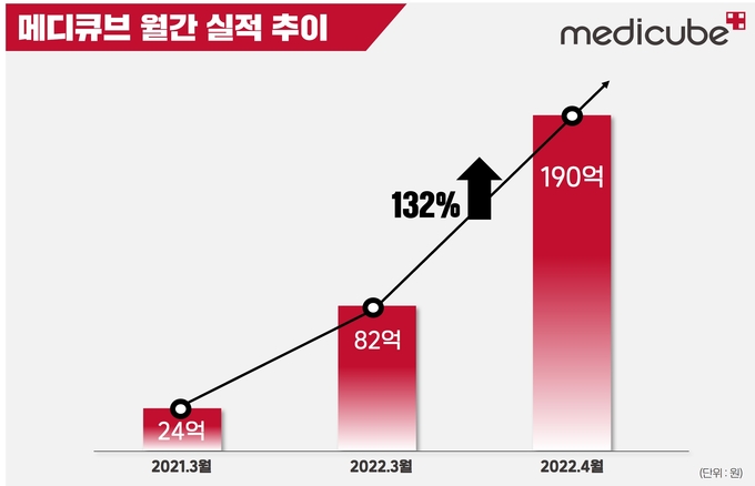 기존 1종의 기기만 판매했던 1~2월을 지나, 3월부터 현재 판매되는 3종의 기기를 모두 내놓은 메디큐브 에이지알은 배우 김희선을 앞세워 4개월 만에 10만 대 판매를 돌파했다. 특히 디바이스와 함께 화장품(더마 코스메틱) 자사몰 매출이 동반 성장하며 3월에만 전년 동기간 대비 156% 성장한 82억 원의 자사몰 매출을 기록했다. 메디큐브는 4월엔 매출 190억 원을 돌파하며 역대 최대 월간 매출 신기록을 세웠다.