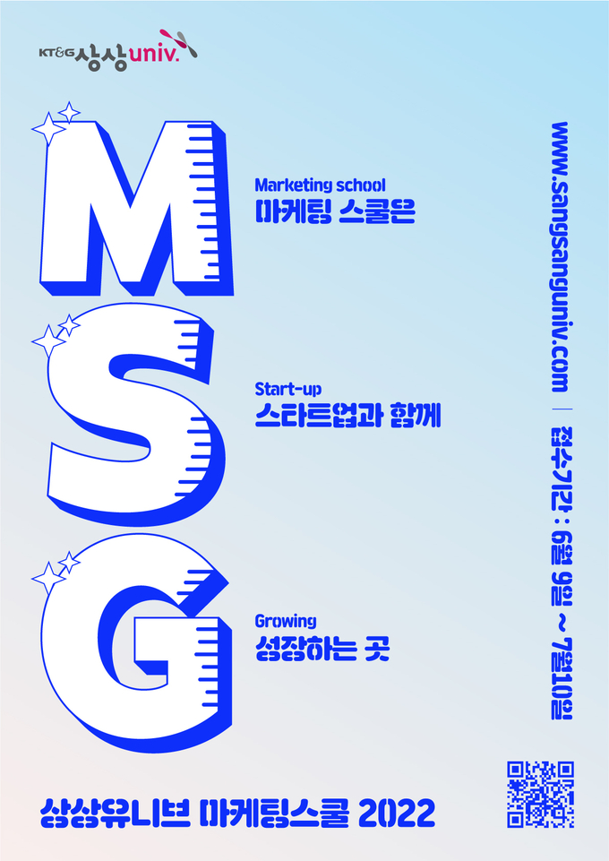 [FETV=김수식 기자] KT&G가 전국 대학생을 대상으로 실전 마케팅을 경험할 수 있는 ‘상상유니브 마케팅스쿨’을 오는 6월 9일부터 7월 10일까지 모집한다.