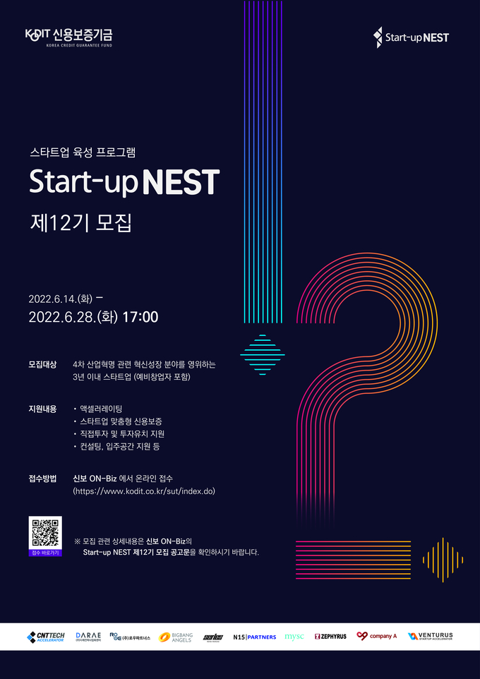 ‘스타트업 네스트’는 신보의 축적된 창업기업 지원 경험을 바탕으로 국내 최고 수준의 민간 액셀러레이터 10개사와 함께 ‘액셀러레이팅→금융지원→성장지원’의 단계적 지원을 제공하는 국내 대표 스타트업 육성 플랫폼이다.