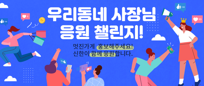 이번 챌린지는 영업점 내 설치된 디지털 창구, 포스터, 전광판 등을 활용해 영업점 인근 자영업자의 가게를 홍보하고 할인쿠폰을 제공하는 ‘우리동네 응원 프로그램’에 이은 신한은행의 착한 캠페인이다.