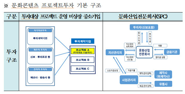 코로나19로 어려움을 겪고 있는 문화콘텐츠 산업을 적극 지원하기 위해 지난 5월 영화, 방송, 공연 장르 프로젝트를 대상으로 한 '문화콘텐츠 프로젝트투자 지원 프로그램'을 제정했다. 투자 한도는 제작비의 20% 이내, 최대 10억원이다.
