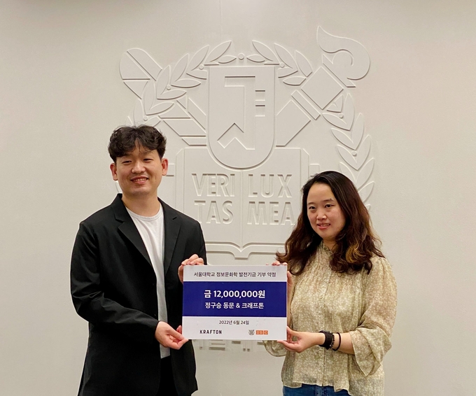 [FETV=최명진 기자] 크래프톤은 구성원과 함께 서울대학교 정보문화학과에 발전 기금 1200만원을 매칭 그랜트 방식으로 약정했다. 지난해 10월 경영대학에 전달한 기부에 이어 서울대학교 출신 구성원이 진행한 두 번째 기부다.