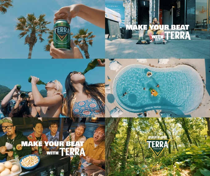 이번 디지털 광고는 ‘Make Your Beat with TERRA’ 슬로건 아래, 다양한 사람들이 각자 비트에 맞게 테라를 즐기는 모습으로 역동감 넘치는 분위기를 전달한다. 특히, 빠른 비트의 음악과 화면 전환으로 처음부터 끝까지 에너지 넘치는 모습들을 자연스럽게 연출해 몰입도를 높이고 보는 재미를 배가시켰다.