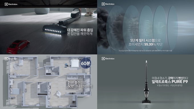 문상영 일렉트로룩스 코리아 대표는 “새롭게 선보인 퓨어 F9은 기존의 상중심과 하중심 형태를 벗어난 완전히 새로운 개념의 제품으로 소비자들에게 흡입력, 지속력, 편의성 등 모든 면에서 최상의 경험을 선사할 것”이라며 “이번 캠페인을 통해 더 많은 고객들이 강력하게 변신한 일렉트로룩스의 무선청소기를 경험해보길 바란다”고 밝혔다.