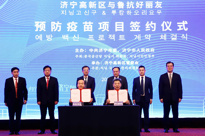 산둥루캉하오리요우와 지닝시 정부는 지난 12일 중국 산둥성 지닝시 소재 성도국제호텔에서 백용운 산둥루캉하오리요우 대표이사, 펑신 루캉의약 동사장, 장둥 지닝시 부시장, 쉬팅푸 고신구 부주임 등 주요 관계자들이 참석한 가운데 결핵백신 개발을 위해 상호 협력하는 계약을 맺었다.