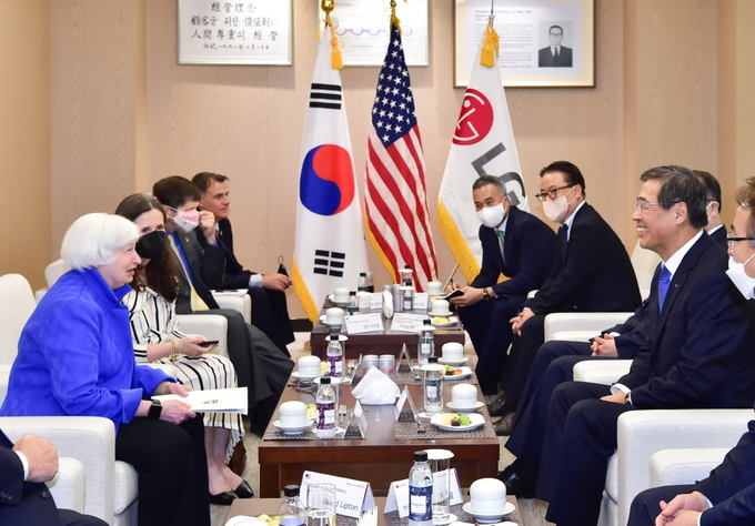 [FETV=박제성 기자] LG화학 신학철 부회장이 재닛 옐런 미국 재무부 장관과 만나 전지 소재 공급망 강화를 위한 협력 방안을 논의했다.