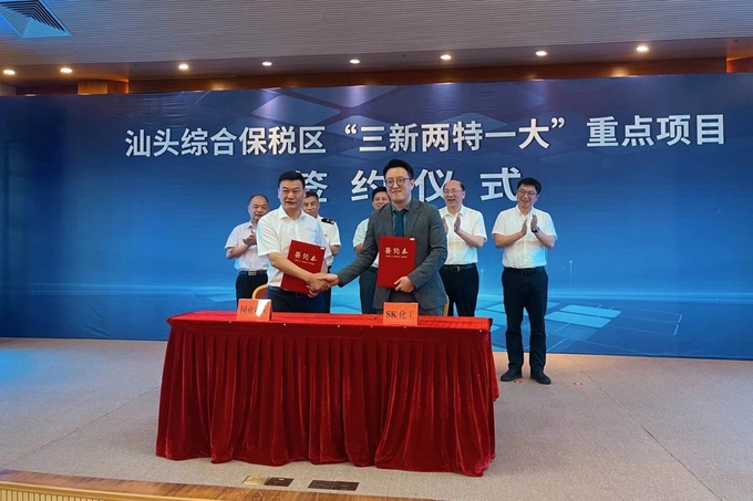 이번 체결식 행사에는 SK화공(상해)의 박노혁 총경리와 슈에의 임수광 동사장이 참석했다. 슈에는 SK케미칼이 지난해 230억원을 투자해 10%의 지분을 취득해 화학적 재활용 플라스틱 원료 2만톤 구매권한(오프-테이크)을 확보한 업체다.
