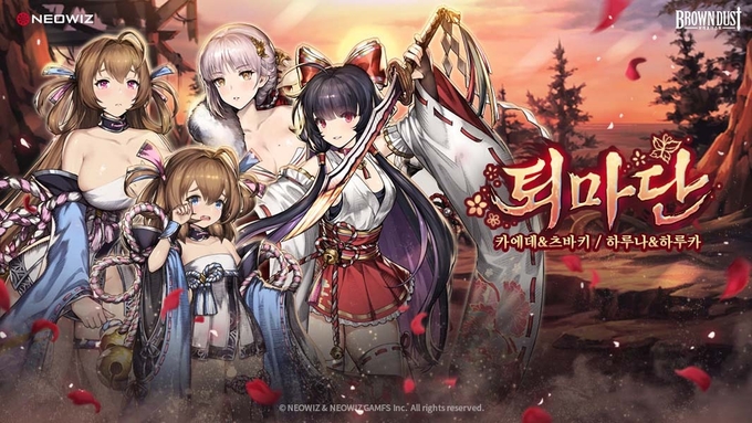 먼저, 5성 공격형 용병 ‘카에데’는 이슬로크 휘하의 부대 퇴마단 소속 소녀로 무녀 가문에서 태어나 츠바키를 만나면서 퇴마단에 들어오게 됐다. 인간 외에 문제 되는 존재들을 퇴치하는 퇴마단에서 가장 빠른 성장을 이뤄냈다. 그녀의 조력자 ‘츠바키’는 부적 안에 담긴 마법과 검을 활용하여 괴수를 처치하는 퇴마단의 리더이다.