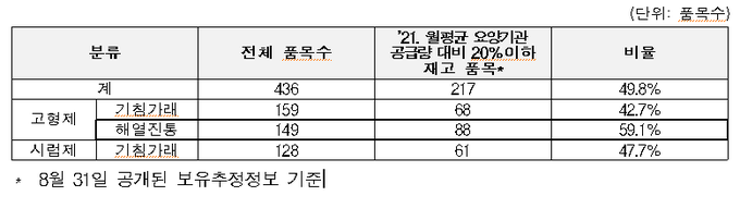특히 감기약 재고량 중 해열진통제(고형제)는 전년도 요양기관 공급량 대비 감소 품목수가 가장 많은 것으로 확인됐다.