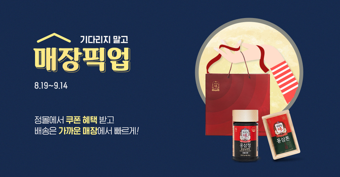 ‘정관장몰’의 ‘홀리한 쿠폰 패키지’, ‘홀리한 프로모션’ 등 온라인 프로모션 혜택을 누리면서 전국 800여개 정관장 매장에서 제품 픽업이 가능해 택배 마감 여부와 상관없이 추석선물을 준비할 수 있다.