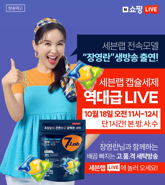 [FETV=김수식 기자] 라이온코리아의 세탁 과학 전문 브랜드 ‘세븐랩’이 네이버 쇼핑 ‘세븐랩 특가 라이브’ 생방송을 예고했다. 오는 18일 오전 11시부터 한 시간 동안 진행될 라이브 방송에는 브랜드 전속모델 장영란이 직접 출연해 특유의 유쾌한 입담을 뽐내며 소통 방송을 이어갈 예정이다.