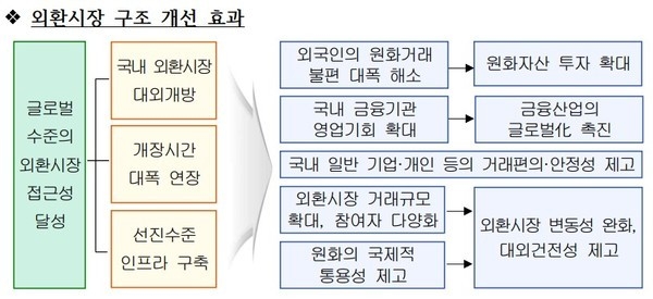 정부는 이번에 발표한 외환시장 구조 개선방안을 향후 공론화 과정, 법령 개정, 은행권 준비 등을 거쳐 이르면 2024년 하반기 시행할 계획이다.