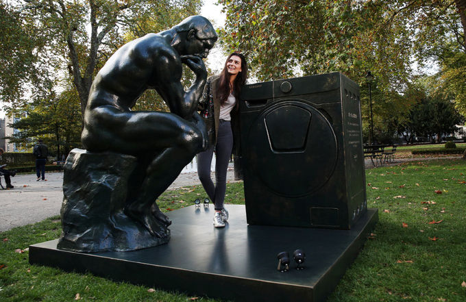 삼성전자는 지난 3일부터 8일까지 복합 쇼핑몰 원 뉴 체인지, 배터시 공원, 러셀 스퀘어, 킹스 크로스 역 등 런던 명소에서 미켈란젤로의 ‘다비드’, 로댕의 ‘생각하는 사람’ 등 오랜 세월이 지나도 변치 않는 예술 작품이 지닌 가치와 퀵드라이브가 추구하는 제품 철학의 공통점을 유머러스하게 표현한 작품을 전시했다.