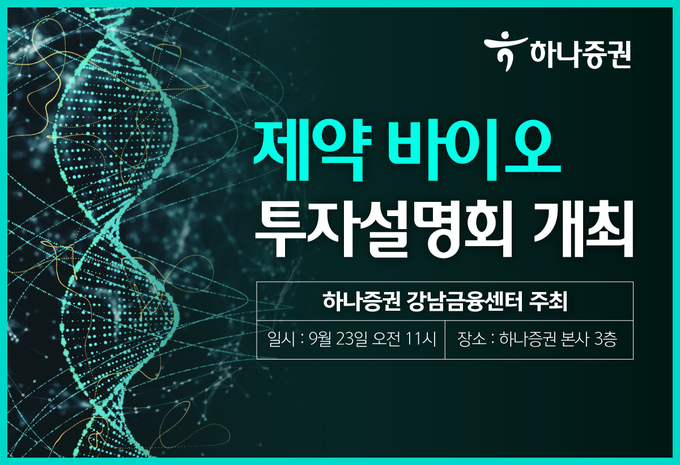 [FETV=심준보 기자] 하나증권 강남금융센터는 오는 23일 토요일 오전 11시부터 여의도 본사 3층 한마음홀에서 제약 바이오 업종 투자설명회를 개최한다고 13일 밝혔다.