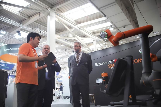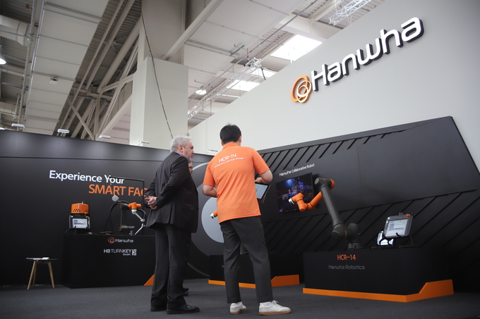 22일 한화 모멘텀에 따르면 가반하중이 14kg으로 높아지고 구동범위가 1420mm로 늘어난 HCR-14는 한화 전시관을 방문한 많은 관람객들에게 큰 호응을 이끌어 냈다. 또 많은 관심고객들이 제품과 기술 관련 상담을 진행했다.