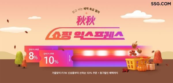 [FETV=박지수 기자] SSG닷컴은 오는 8일까지 가을맞이용 패션, 잡화, 가전 등을 최대 80% 할인하는 ‘추추(秋秋) 쇼핑 익스프레스’ 행사를 연다고 4일 밝혔다.