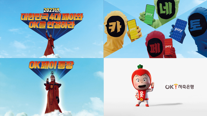 엄지윤은 ‘대한민국 4대 페이와 OK를 연결하라’는 슬로건과 함께 전대물 스타일의 옷을 입고 등장하며, 4대 페이사의 브랜드 컬러를 입고 ‘네-카-페-토’를 외치는 쫄쫄이 4인방과 하나되는 모습으로 간편결제에 특화 혜택을 제공하는 OK페이통장의 특징을 유쾌하게 표현했다. 이와 함께 광고 엔딩에 SD 캐릭터 ‘읏맨’이 한층 업그레이드된 모습으로 나타나 재미적 요소를 더했다. OK저축은행의 신규 광고는 지상파TV, CATV, 유튜브, 극장에서 확인할 수 있다.