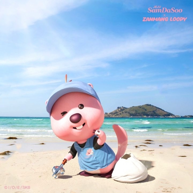 제주삼다수를 생산·판매하는 제주특별자치도개발공사는 13일 제주로 여행 온 잔망루피가 환경보호를 위해 제주 해안가 플로깅(조깅하면서 쓰레기 줍기) 활동을 하는 모습을 담은 ‘제주삼다수-잔망루피 컬래버레이션(협업) 화보’를 공개했다. ESG(환경·사회·지배구조) 메시지를 재치 있게 풀어내고 젊은 층의 공감을 사기 위해서다.