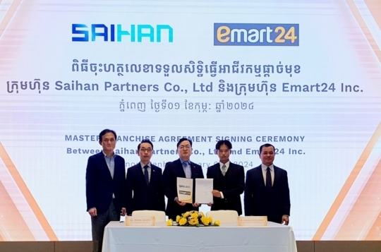 앞서 이마트24는 작년 12월 사이한 파트너스와 마스터 프랜차이즈 계약을 체결해 캄보디아 편의점 사업을 위한 인프라 구축을 완료했다. 마스터 프랜차이즈는 가맹 사업자가 직접 해외에 진출하는 대신 현지 기업과 계약한 후 가맹을 희망하는 사람들에게 일정 지역에서 가맹 사업 운영권을 판매하는 방식을 말한다.