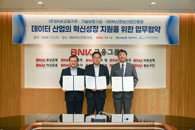 [FETV=임종현 기자] BNK금융그룹은 3일 부산은행 본점에서 기술보증기금, 부산정보산업진흥원과 함께 데이터 산업 혁신성장 지원을 위한 업무협약을 체결했다고 3일 밝혔다.