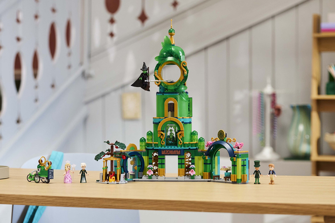 먼저, ‘에메랄드 시티’는 오즈를 상징하는 환상적인 초록색 3층 탑을 총 945개 브릭으로 구현했다. 엘파바, 글린다, 마법사, 마담 모리블, 피예로 등 주인공 캐릭터 5명의 미니 인형과 그리메리 마법책, 말하는 거대 머리 등 각종 소품이 마련돼 다양한 역할 놀이를 즐길 수 있다.