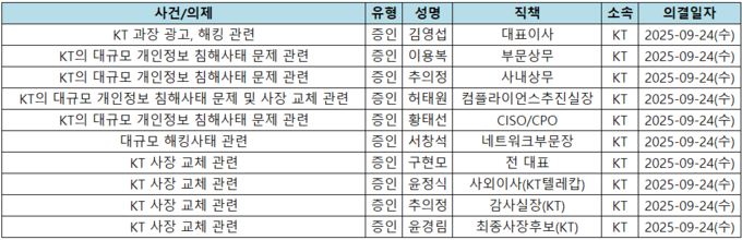 보안·네트워크 라인에서도 책임자들이 전원 소환됐다. 황태선 CISO는 개인정보·정보보호 총괄 책임자이며, 서창석 부문장은 전국 유·무선망을 관리하는 네트워크 총괄이다. 국회는 이번 소환을 통해 KT 내부 보안 체계와 관리 프로세스를 전방위적으로 따져 묻겠다는 방침이다.