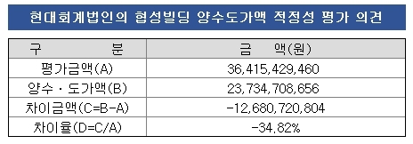엔젠바이오가 양수하기로 결정한 협성빌딩에 대해 현대회계법인이 평가한 감정액은 364억원이다. 엔젠바이오의 인수가액 대비 34.84% 차이를 보인다. 그만큼 감정액 대비 36.84% 인하된 가격에 협성빌딩을 인수하기로 계약했다는 의미다.