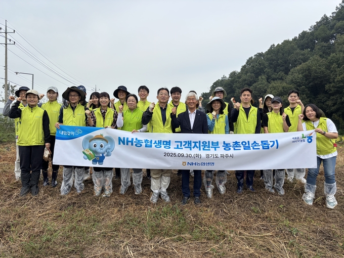 [FETV=장기영 기자] NH농협생명은 지난달 30일 경기 파주시에 위치한 고구마 농가에서 일손돕기 봉사활동을 실시했다. 농협생명 고객지원부 임직원 20여명은 이날 고구마를 수확하고 농가 주변을 정리했다. 봉사활동에 참여한 임직원들이 기념촬영을 하고 있다. [사진 NH농협생명]
