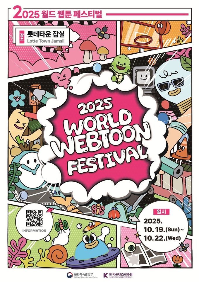 한편 롯데월드와 롯데시네마 월드타워에서는 10월 19일부터 22일까지 ‘공식 전시와 체험 프로그램’이 마련된다. 롯데월드 아이스링크에서는 웹툰의 시초부터 현재 그리고 미래까지 연대기를 살펴 볼 수 있는 ‘웹툰 기획 전시’를 중심으로 웹툰 작가의 ‘라이브 드로잉쇼’, 인기 성우인 남도형의 ‘라이브 더빙쇼’, <더 그레이트>, <이태원 클라쓰>의 광진 작가의 ‘사인회’ 등이 열린다.
