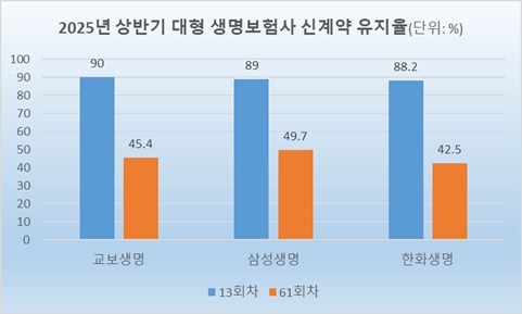 이 기간 한화생명을 제외한 2개 대형사의 61회차 유지율이 상승했다.