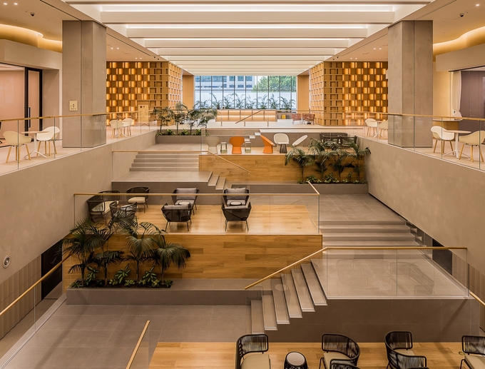 2층 ‘빛의 라이브러리’는 통창과 자연 목재의 질감을 살린 설계와 사선 및 곡선을 활용한 공간 디자인으로 창의적인 소통과 협업을 이끌어내는 새로운 업무 공간이자 휴식의 공간으로 설계했다.