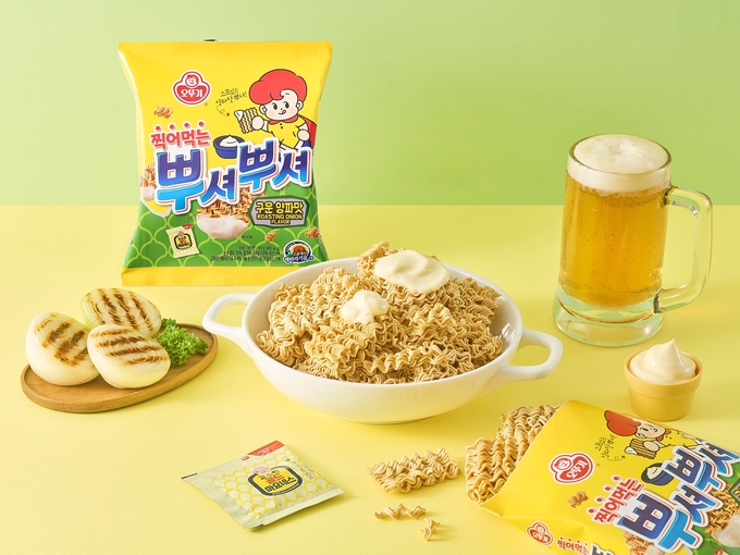 ‘찍어먹는 뿌셔뿌셔 구운양파맛’은 로스팅한 양파의 고소한 향과 달콤한 감칠맛이 어우러진 깊은 풍미가 특징이다. 여기에 ‘골드 마요네스’ 딥핑 소스를 함께 구성해, 면을 찍어 먹으면 한층 진하고 고소한 맛을 즐길 수 있다.