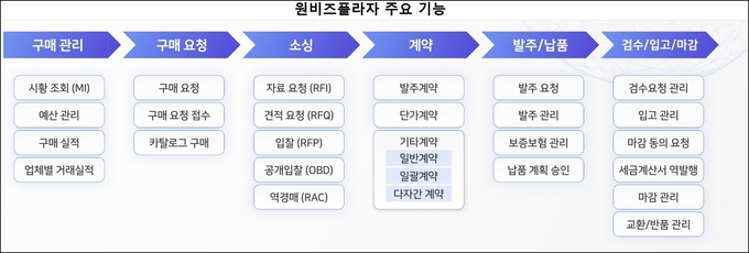 플랫폼에서는 구매 요청부터 견적·입찰, 단가계약, 발주, 검수까지 표준 구매 프로세스 전체 기능을 무상으로 제공하며, 기업별 업무환경에 맞춰 필요한 구매기능만 골라서 선택할 수도 있다. 특히 공개입찰, 예산관리, 공급사 탐색, 역경매, 다자간 계약 등 공급망 관리에 특화된 기능들을 더해 차별성을 높였다는 것이 우리은행의 설명이다.