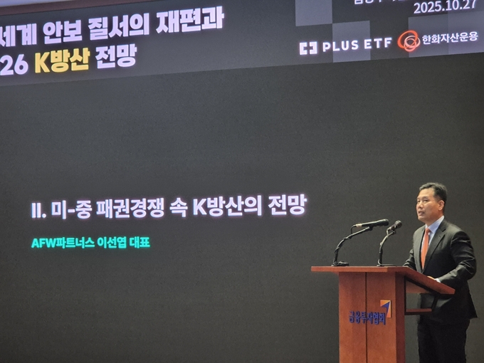 이선엽 AFW파트너스 대표는 27일 여의도 금융투자협회에서 열린 ‘전 세계 안보질서의 재편과 2026 K방산 전망’ 기자간담회에서 “대륙 간, 국가 간 갈등 구도가 완성되고 있는 흐름이 국제적으로는 안타까운 상황이지만 우리 방산업계에는 기회”라며 “미·중 갈등으로 방산업계에서 경쟁자였던 중국과 러시아가 제외된 상황”이라 주장했다.